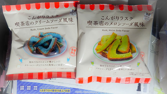 【1】ローソン こんがりラスク 喫茶店のクリームソーダ風味/喫茶店のメロンソーダ風味
