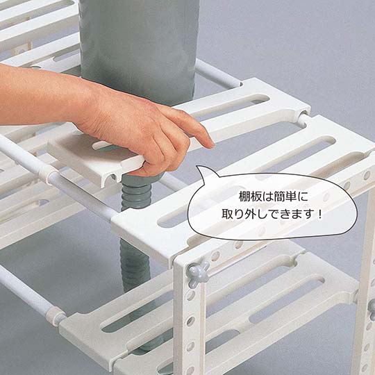 後ハメ方式でパイプやら筒やらを避けられるラック。