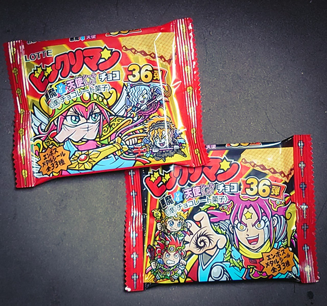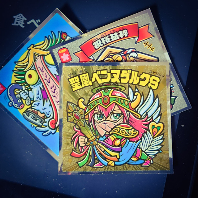 ■KNK : ビックリマン第36弾 投稿日: 2023-05-302023-06-12カテゴリー: KNK 何度も書いてるけど、ナッツ→クランチ化したお菓子がツラい。でもツラいツラいと言いながら、今回の第36弾はシールが良いので買ってしまう。逃れられない「ビックリマン」の呪いよ…。